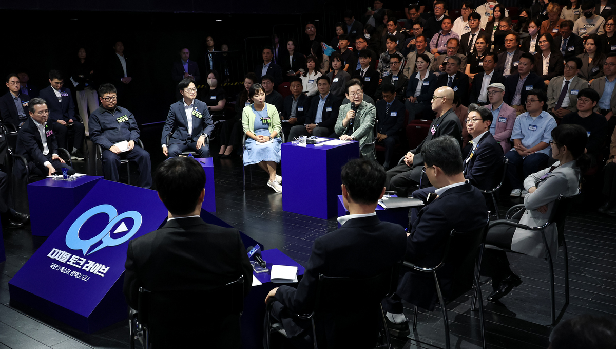 이재명 대통령이 14일 서울 동대문구 KOCCA 콘텐츠문화광장에서 열린 '디지털토크라이브: 국민의 목소리, 정책이 되다'에 참석해 민생·경제 현장의 다양한 목소리를 직접 청취했다.